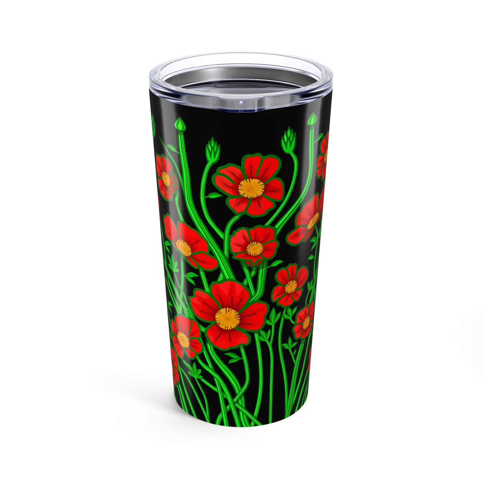 .: Vacuum insulated steel body with a clear push on lid with a rubber gasket