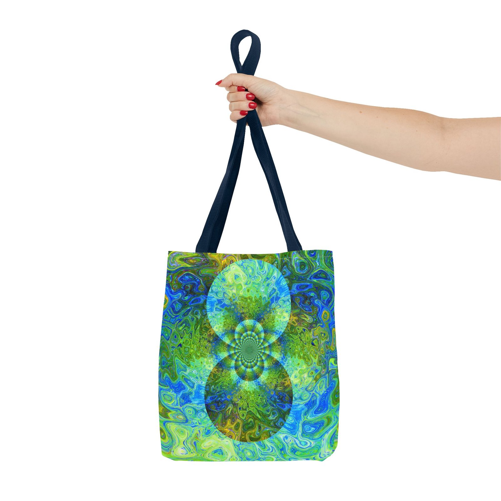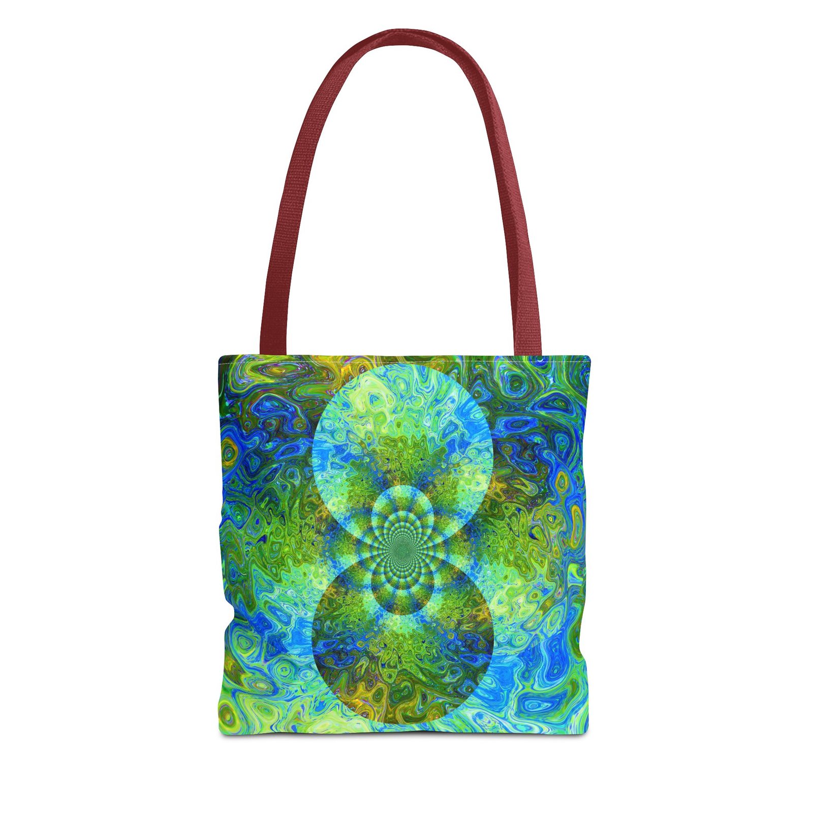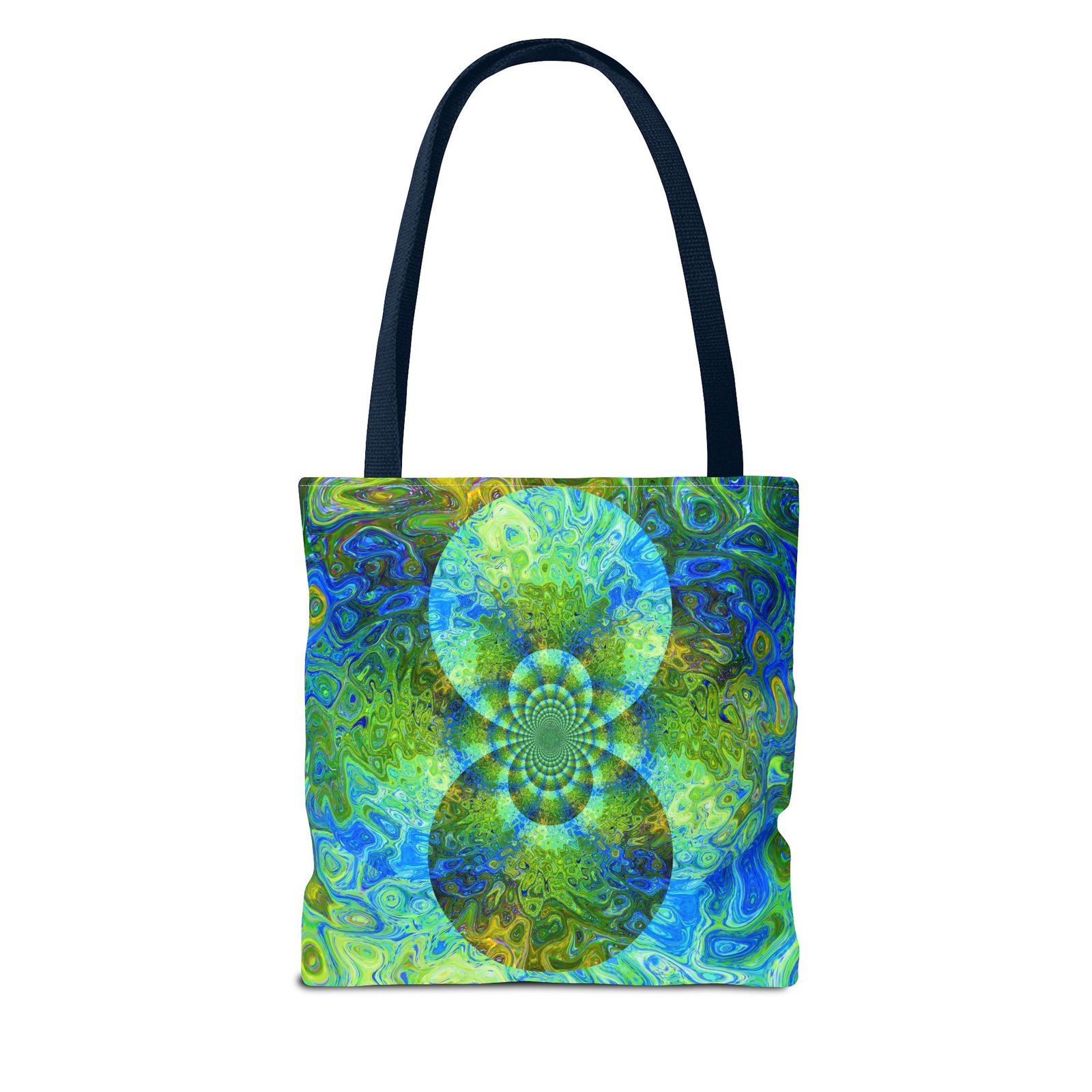 Available in 3 sizes to add both functionality and style, these custom-printed tote bags come with multiple handle colors to match your designs. Made with spun polyester, these bags feature double-stitched seams, cotton webbing straps, and nonwoven laminate lining for high-end durability. Your all-over print is created with dye sublimation for high-end visuals.