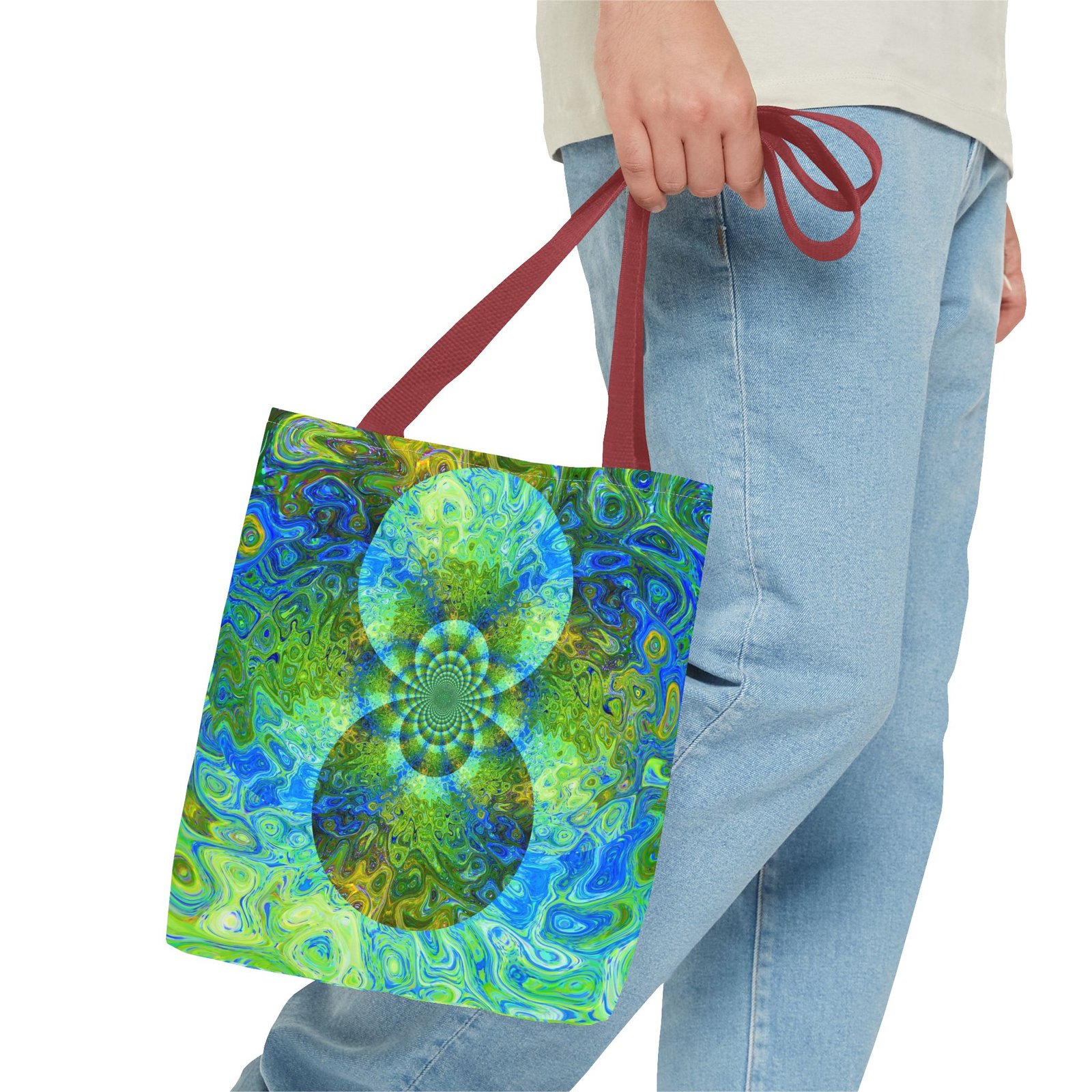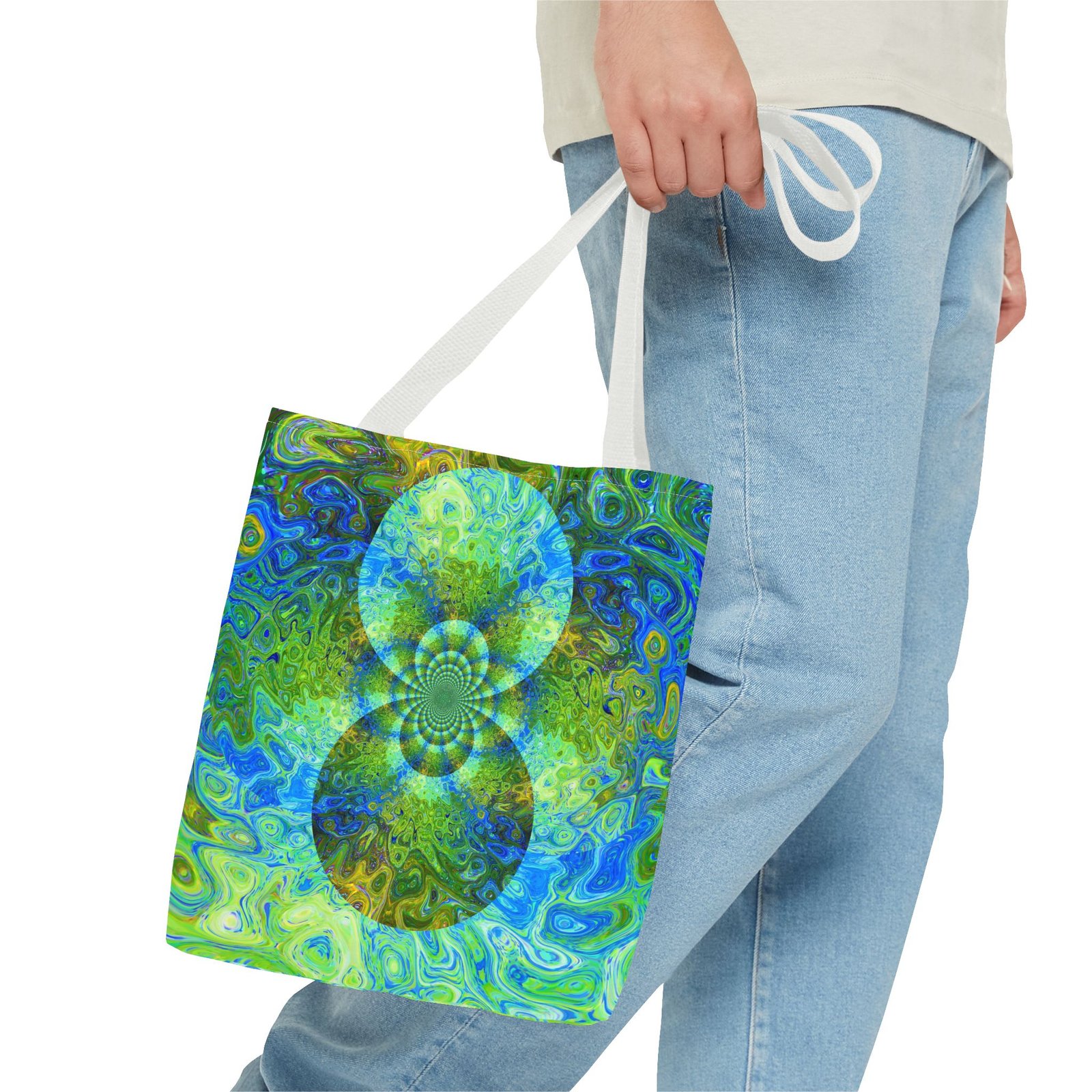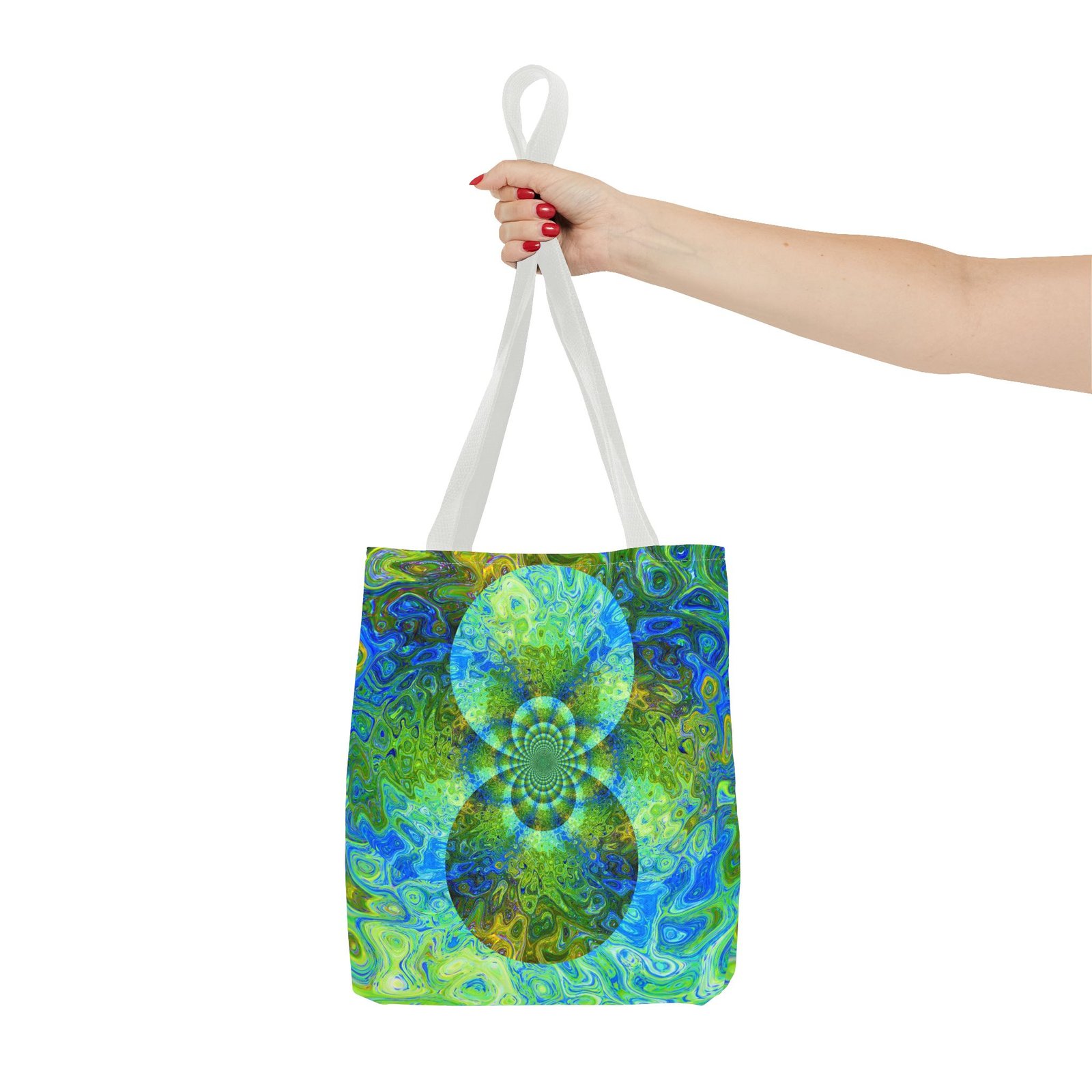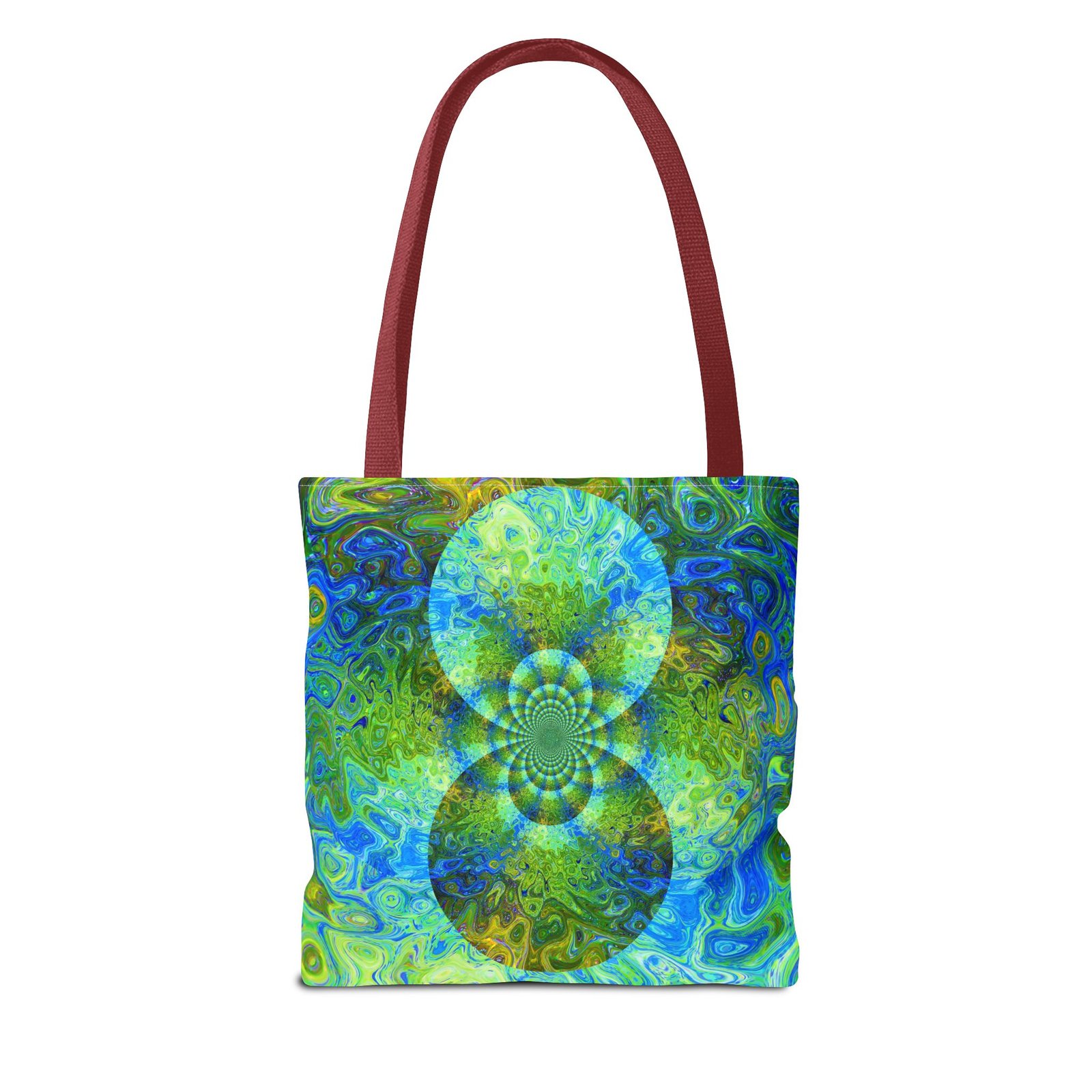 Available in 3 sizes to add both functionality and style, these custom-printed tote bags come with multiple handle colors to match your designs. Made with spun polyester, these bags feature double-stitched seams, cotton webbing straps, and nonwoven laminate lining for high-end durability. Your all-over print is created with dye sublimation for high-end visuals.